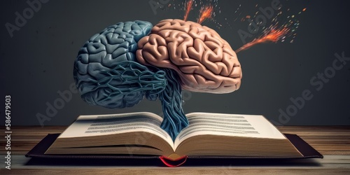 Book with a brain and bookmark, Generative AI.