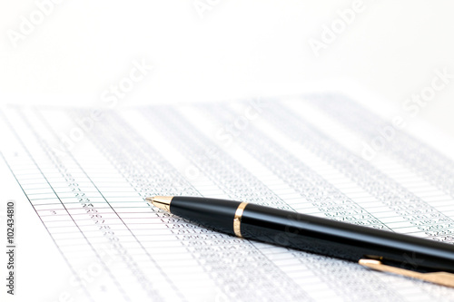 Bookkeeping concept. Closeup of pen on paper background with digits