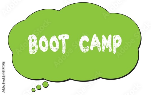 BOOT CAMP text written on a green thought bubble.