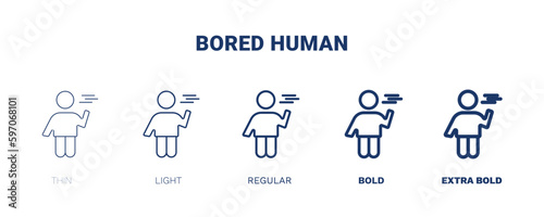 bored human icon. Thin, light, regular, bold, black bored human icon set from feeling and reaction collection. Editable bored human symbol can be used web and mobile