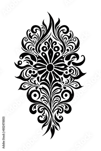 Botanical black and white pattern. For use on tattoos, posters, textiles, T-shirt printing. Generated by Ai