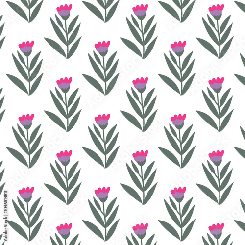 Botanical seamless pattern, vector illustration hand drawn style, Doodle flowers background, minimal botanical art.