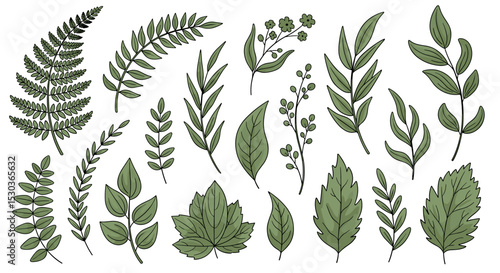 Botanical Vector Illustration Featuring Assorted Green Leaves and Branches Nature Inspired Design Elements