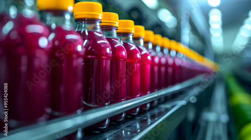 Bottles Colorful Juice Conveyor Belt