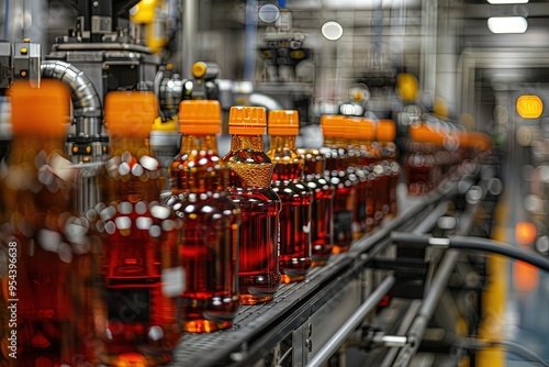 Bottles of liquor are being made on a production line