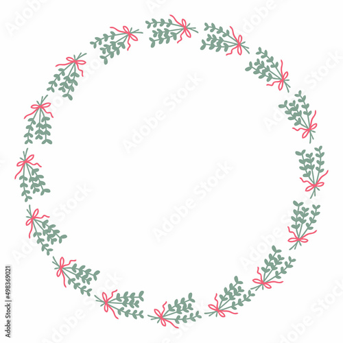 Bouquet of branches with ribbon frame isolated on white background. Perfect for party invitations, greeting cards and print. Floral vector illustration for decor and design.
