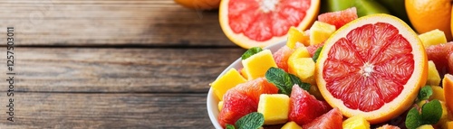 Bowl filled with assorted fresh fruit including apples oranges and bananas on a wooden table