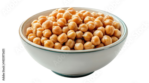 bowl filled with chickpeas. showcasing their round. beige appearance the bowl is set against a plain white background. emphasizing the chickpeas' texture and color this presentation highlights chickpe