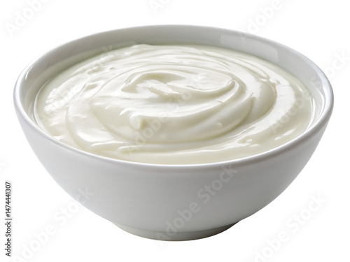 Bowl of Creamy Plain White Yogurt Isolated on transparent background cutout, PNG file, Cutout file