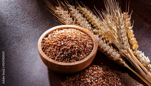 bowl of farro grain with wheat ear healthy food nutrition agriculture