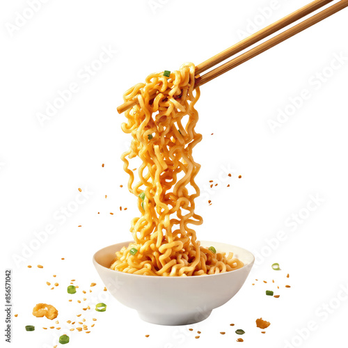 bowl of noodles with chopsticks isolated on transparent white background, clipping path