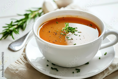 Bowl of soup on white background