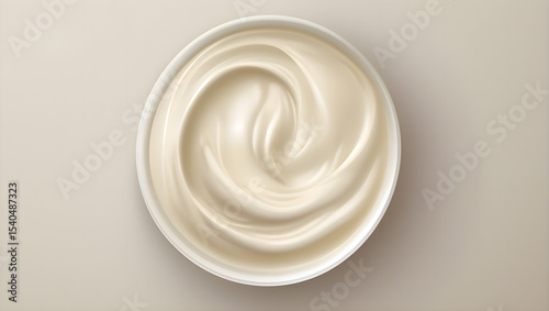 Bowl of yogurt placed on a clean white surface as a simple and healthy breakfast or snack option in a neutral studio composition
