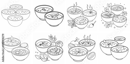 Bowls of Soup – Outline Coloring Book Line Art Set