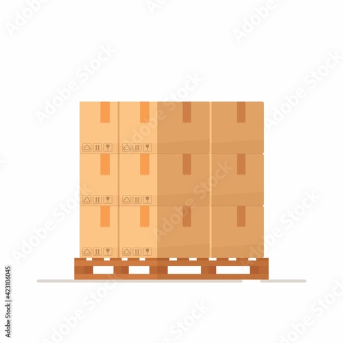 Boxes on a wooded pallet. Vector illustration, flat style stock cardboard boxes. Parcels stack front view.