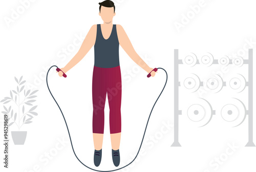 Boy exercising with skipping rope.