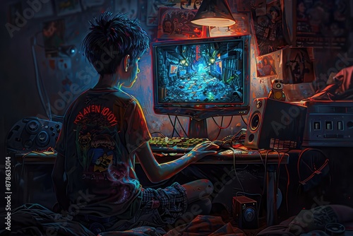 Boy Immersed in Video Game Adventure