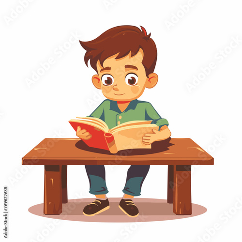 Boy reading a book while sitting on a table , cartoon style vector art