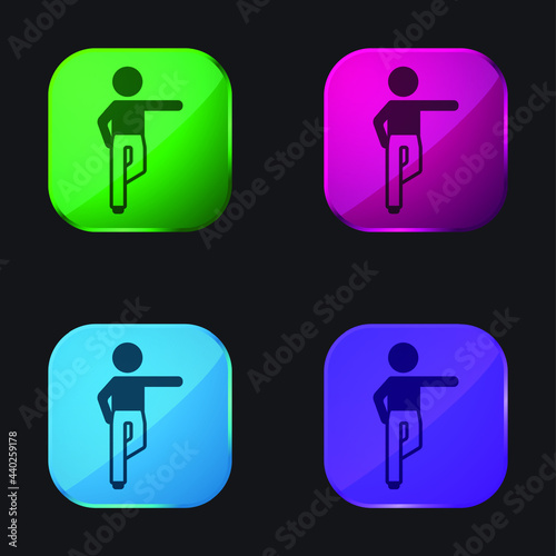 Boy Standing On Right Leg Stretching Left Arm four color glass button icon