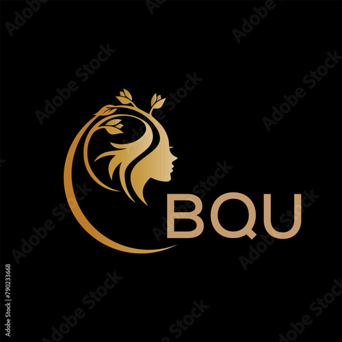 BQU letter logo. best beauty icon for parlor and saloon yellow image on black background. BQU Monogram logo design for entrepreneur and business.
