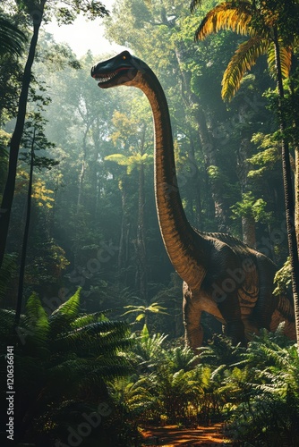 Brachiosaurus Roaming in a Lush Prehistoric Forest