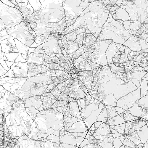 Bradford Area Map with Labels and Neighborhoods - One color, minimalistic design