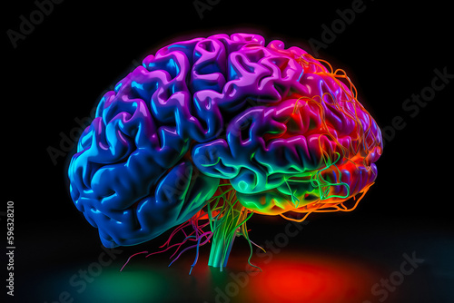 Brain abstract digital human brain. Neural network digital Electrical activity, flashes and lightning. Artificial brain, neon light abstract background.