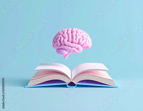 Brain Floating Above Open Book Concept of Learning and Knowledge Acquisition