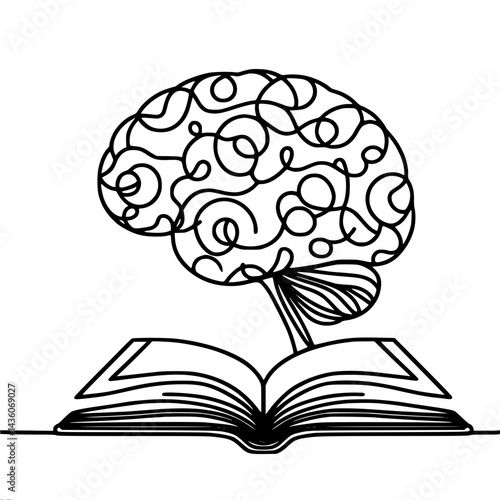 Brain Growth Emerging from an Open Book in Line Art Style