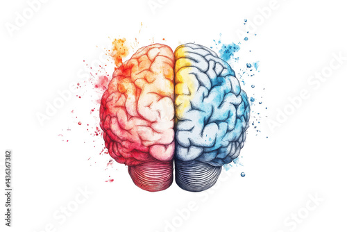 Brain image represents human thinking and intelligence centered on a bright and clear white background