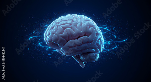 Brain in Focus: A striking, detailed rendering of a human brain, illuminated against a deep blue background. The image invites exploration into the realms of thought, consciousness.