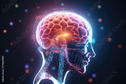 Brain in sleep, adorned neon lights,mantras and Chakra visualizations. Embracing silence and peaceful breath,haven for inner peace and stress reduction, creating a serene and tranquil sanctuary.