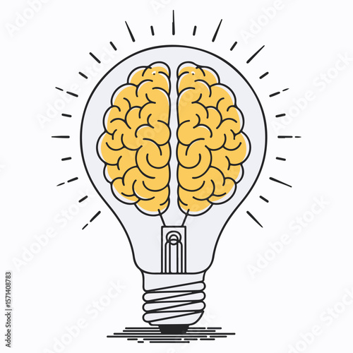 Brain Inside Light Bulb Vector – Creative Intelligence and Idea Concept Illustration