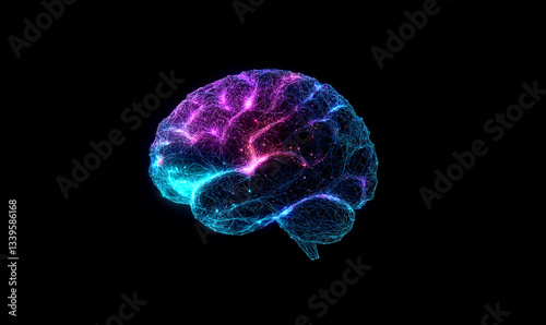 Brain low poly anatomy background with abstract polygonal digital design