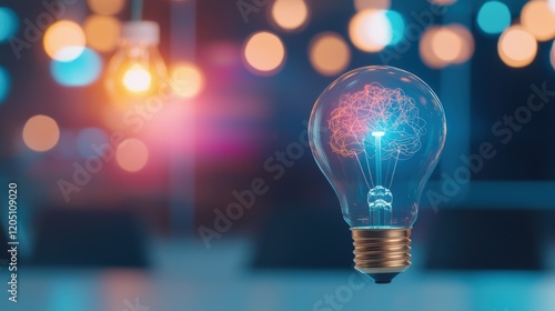 Brainstorming A group of diverse people sitting around a table, sketching ideas on a whiteboard, with colorful thought bubbles and lightbulbs illuminating their heads.