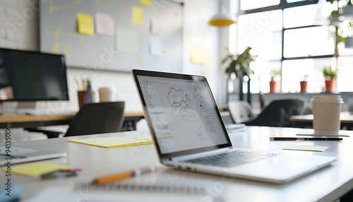 Brainstorming Session in Modern Office with Strategic Notes and Dynamic Atmosphere