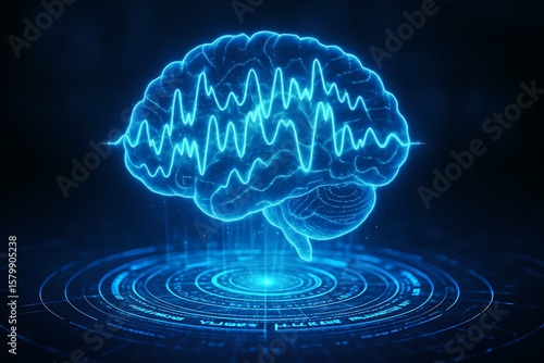 Brainwaves sculpted into holographic interface, futuristic neural visualization