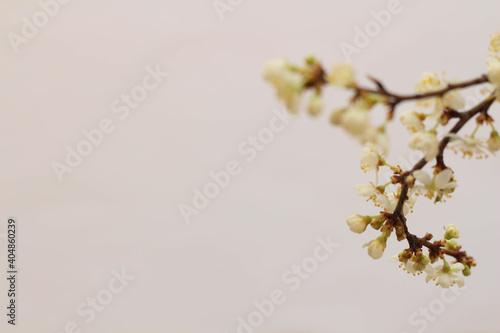 Branch in blossom isolated on white background. Plum. Gift card idea. Spring. Mather day