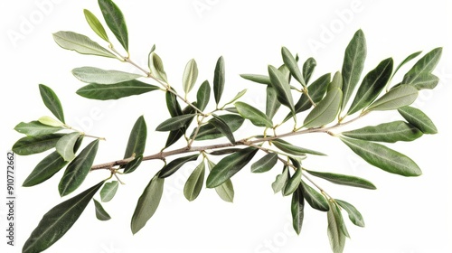 branch of a olive tree with leaves isolated on white background