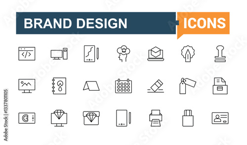 Branding linear icon. Featuring company, social, identity, brand, product, strategy and more. Icons for UI. Brand design simple icon. Editable stroke vector art.