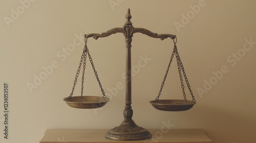 Brass scales balance, neutral background, justice concept, legal imagery