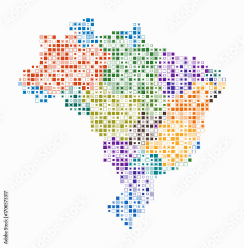 Brazil, shape of the country build of colored cells. Digital style map of the Brazil on white background. Small size square blocks. Awesome vector illustration.
