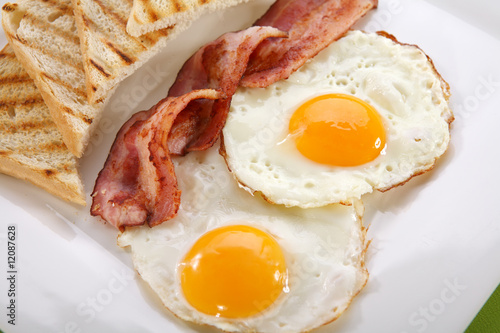 Breakfast - toasts, eggs, bacon