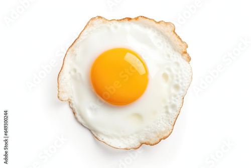 Breakfast Essential: Flat Lay of a Fried Egg, Captured from a Top View and Isolated on a Transparent White Canvas