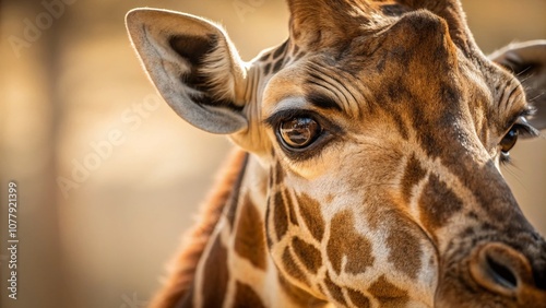 Breathtaking Close-Up of a Giraffe's Expressive Eyes Capturing the Essence of Nature with Soft Focus and Copy Space for Text Overlay