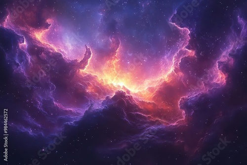breathtaking cosmic vista of swirling nebula in deep space with vibrant purples and blues illuminating distant stars and galaxies evoking wonder at the vastness of the universe