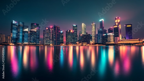 Breathtaking futuristic cityscape with neon lights and digital code blending tech and architecture