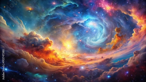 Breathtaking image of a colorful nebula with swirling gas clouds illuminated by stars, nebula, colorful, cosmic