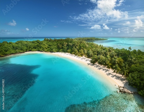 breathtaking summer banner showing a bird's eye view of a clear lagoon with a beautiful clean beach and green vegetation