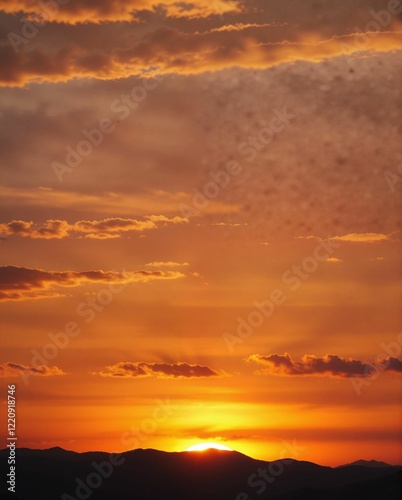 Breathtaking Sunset Over Mountain Landscape with Vibrant Orange Sky